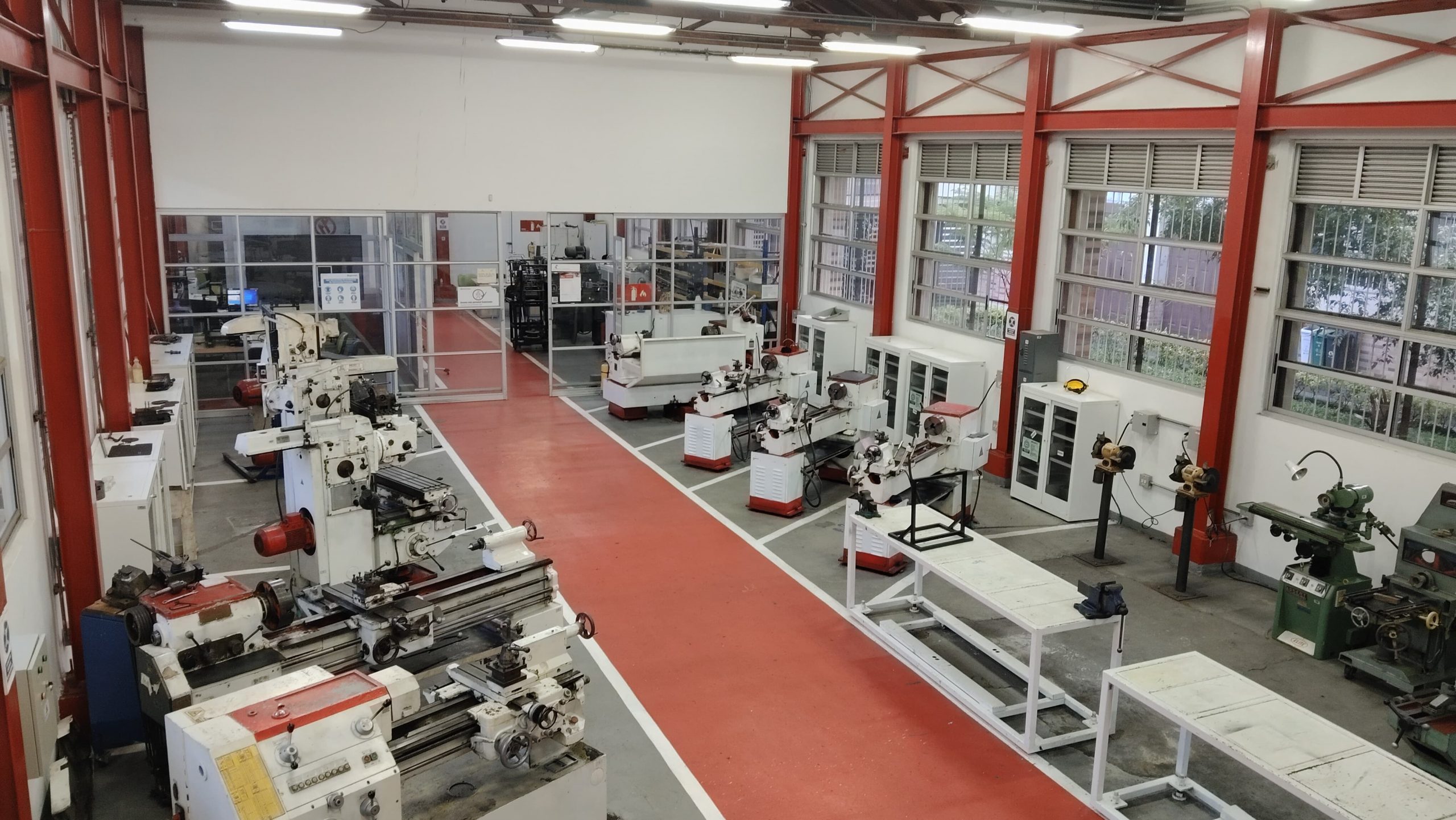- Entre las máquinas que componen el laboratorio, se cuenta con tornos paralelo, fresadoras, taladro de columna, sierra hidráulica, cepillo puente y esmeriles.