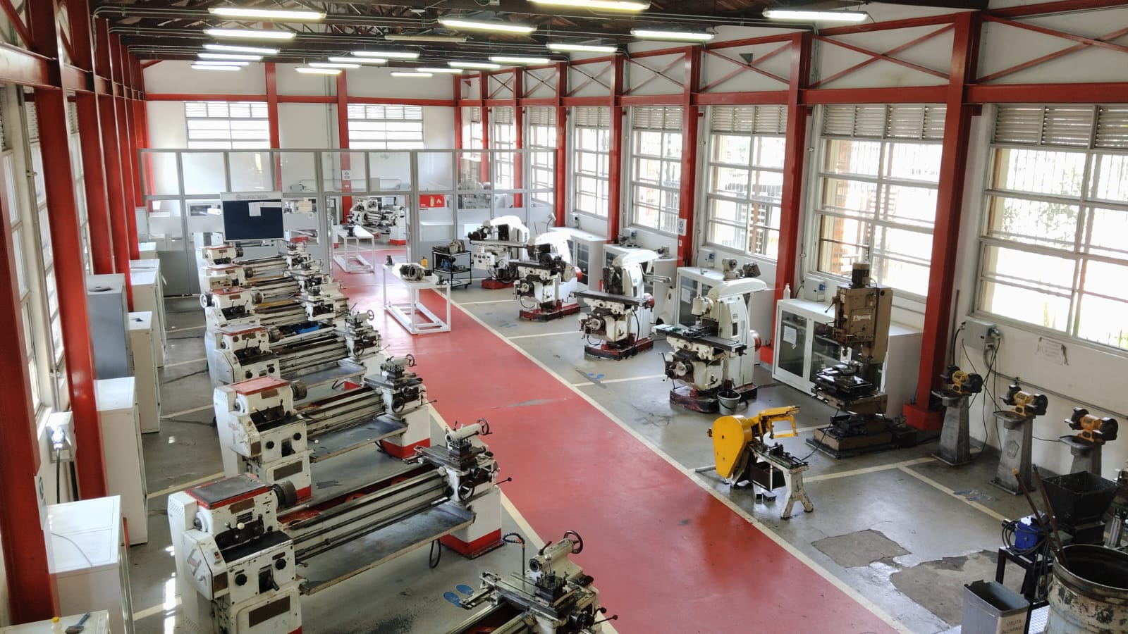 - Línea de 12 tornos paralelos, los cuales son utilizados para que los estudiantes puedan conocer su funcionamiento y fabricar piezas de geometría de revolución.