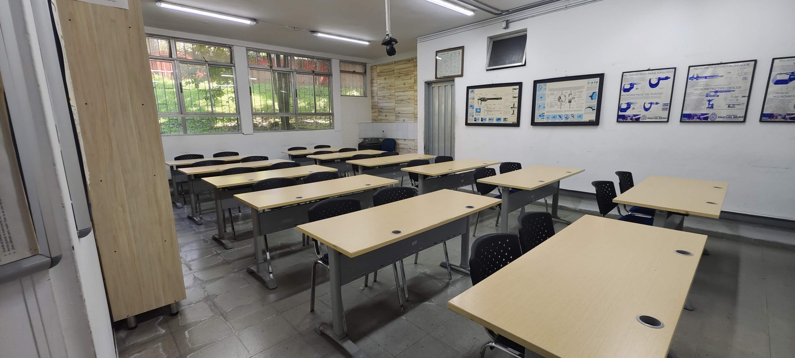 El laboratorio cuenta con 12 mesas de trabajo donde los estudiantes pueden realizar las actividades de las prácticas de medición de piezas.
