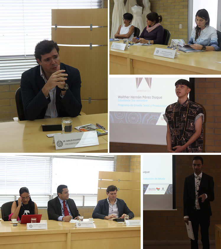 Gracias a la exitosa gestión de la Facultad de Producción y Diseño, nuestra Institución recibió con beneplácito la importante visita del alto equipo directivo del Instituto para la Exportación de la Moda INEXMODA, en cabeza de su Presidente, el doctor Carlos Eduardo Botero Hoyos, así como la directora del Laboratorio de Moda y Económico, Martha Calad, la directora de Espacios Comerciales, Clara Inés Henríquez y la coordinadora de Espacios Comerciales, Leonor Hoyos Toro.